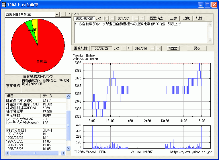 各銘柄にメモが登録できます。メモ1件の字数制限は64KBまでですが、登録できる件数には実用上制限はありません。
