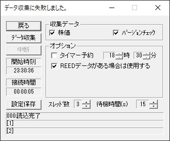 [OK]ボタンを押した後、再度データ収集を行ってもデータ取得できない方はその旨をメールにてライセンス番号を添えて連絡ください。